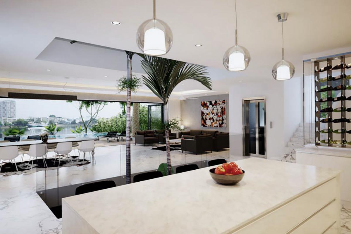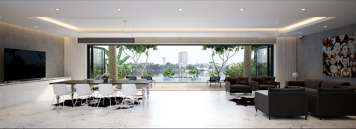 This luxury Family House is located directly on the banks of the Saigon river and has a private pier.