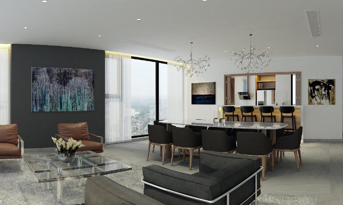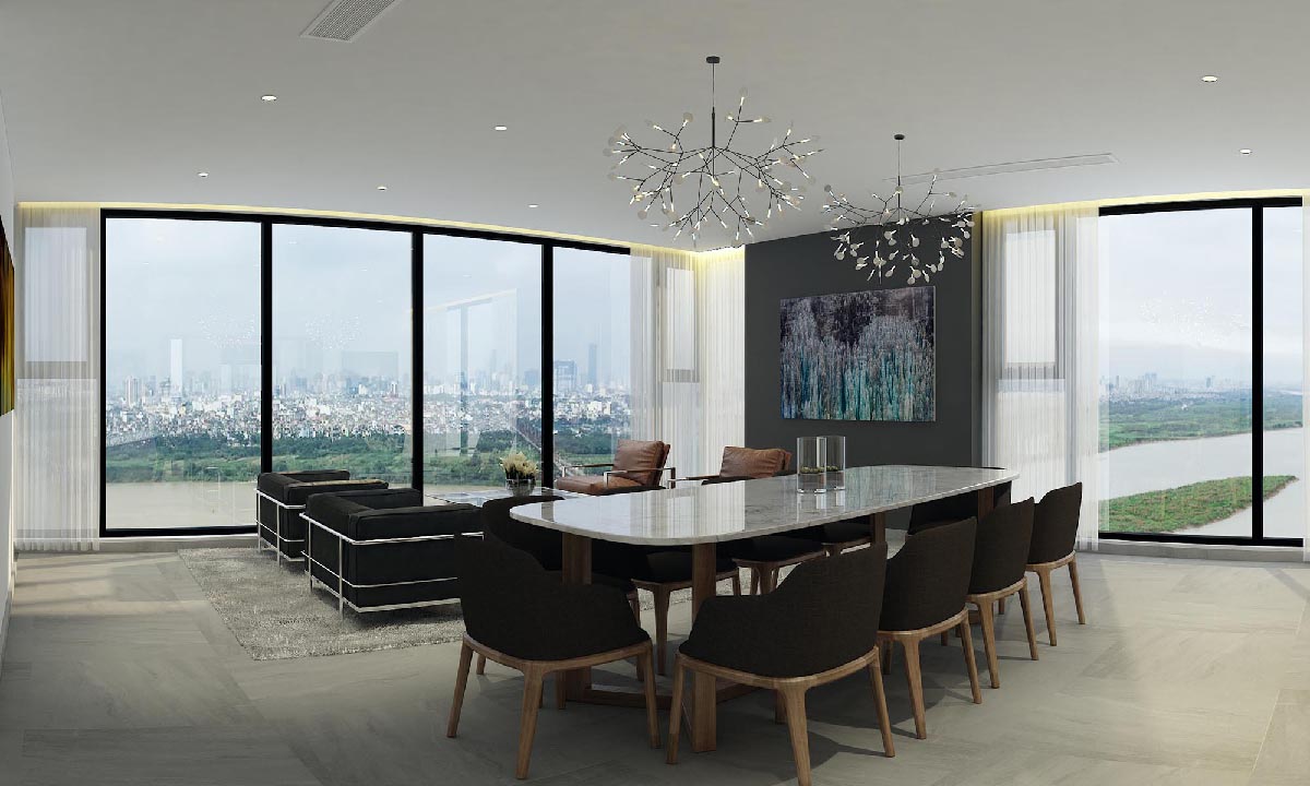 This 3 bedroom 260m² Penthouse is overlooking Long Bien bridge and the heart of Hanoi.